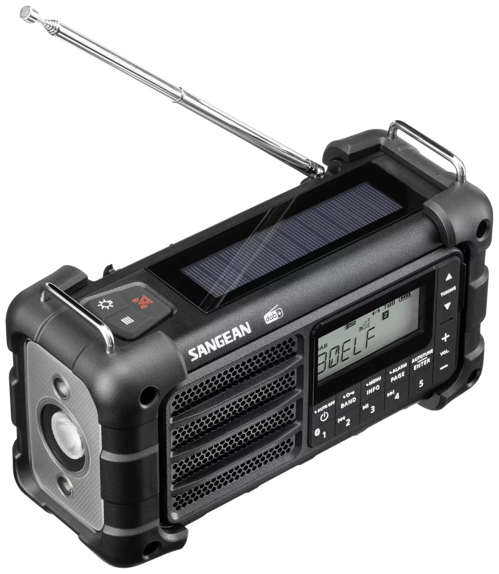 Equipment: DAB+/FM RDS/Bluetooth ATS (automatikus hangoló rendszer) 8 oldal 40 előre beállított állomással (20 DAB+/20 FM) · FM mono/sztereó kapcsoló · Kézi hajtókarral/napenergiával/DC-bemenettel (USB Type-C) az újratölthető lítium akkumulátorhoz · Elem töltöttségi szint jelzés · Töltésjelző LED Állítható 5 üzemmódú LED-es zseblámpa (magas és alacsony/széles és fókusz/villogás/SOS/Morse Code) · Piros fényű zseblámpa az optimális éjszakai látás érdekében · vészvilágítással minden váratlan esetre · beépített óra · beépített prémium hangszóró · Riasztási időzítő 7 különböző hangerővel Hangerőszabályzó (be/ki) · Állítható háttérvilágítás időzítő · Automatikus kikapcsolás mód · IP55: Extrém körülményekhez készült · Kényelmes méret a hordozhatóság érdekében · AUX bemenet további hangforrásokhoz · Sztereó fejhallgató-csatlakozó · DC-Out (5V/1A) USB Type-A kisméretű eszközök töltéséhez · DC-In (5V/2. 4A) USB Type-C USB Type-A – USB Type-C kábel és csuklópánt mellékelve.