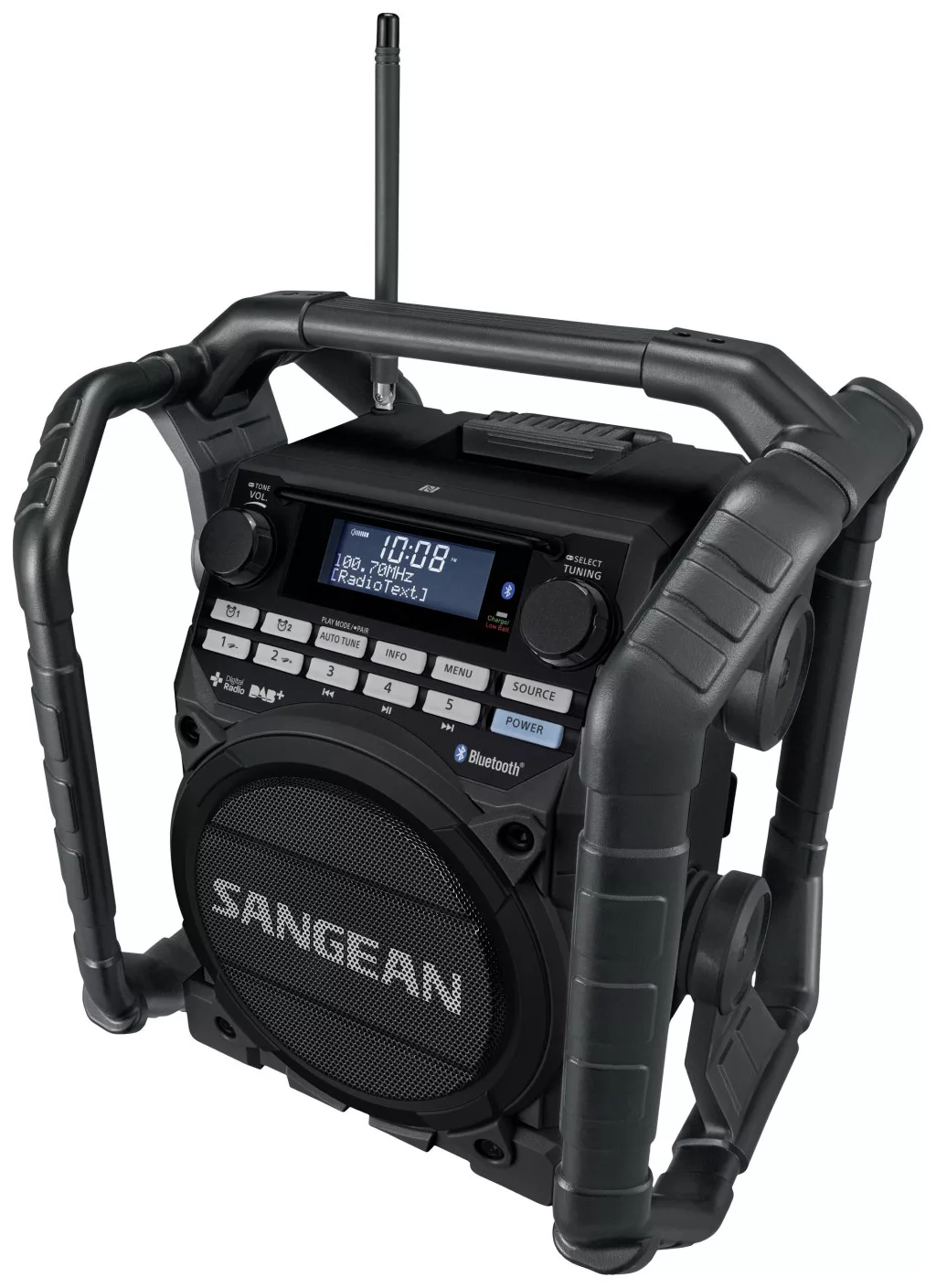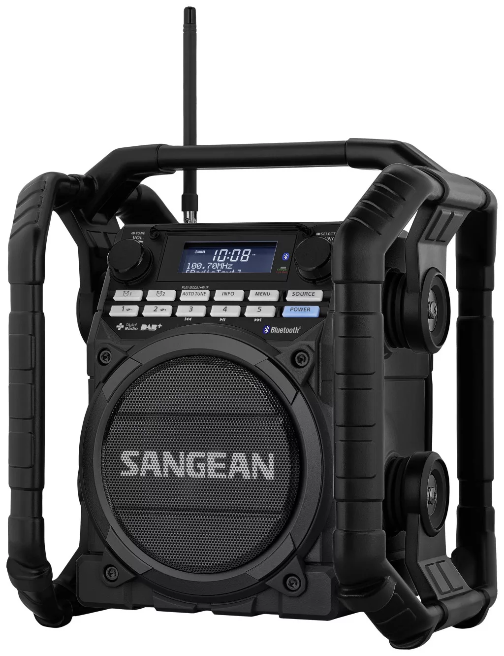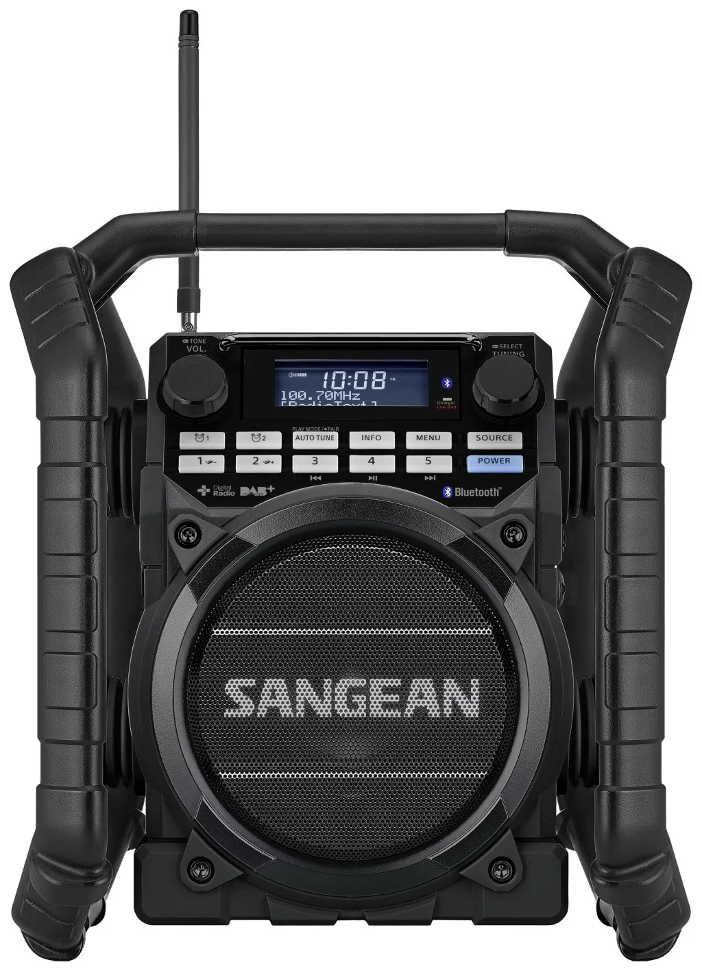 Sangean U-4 DBT+ Építkezési rádió DAB+,URH AUX,Bluetooth®,USB Akkutöltő funkció,Újratölthető,Vízálló,ütésálló Fekete