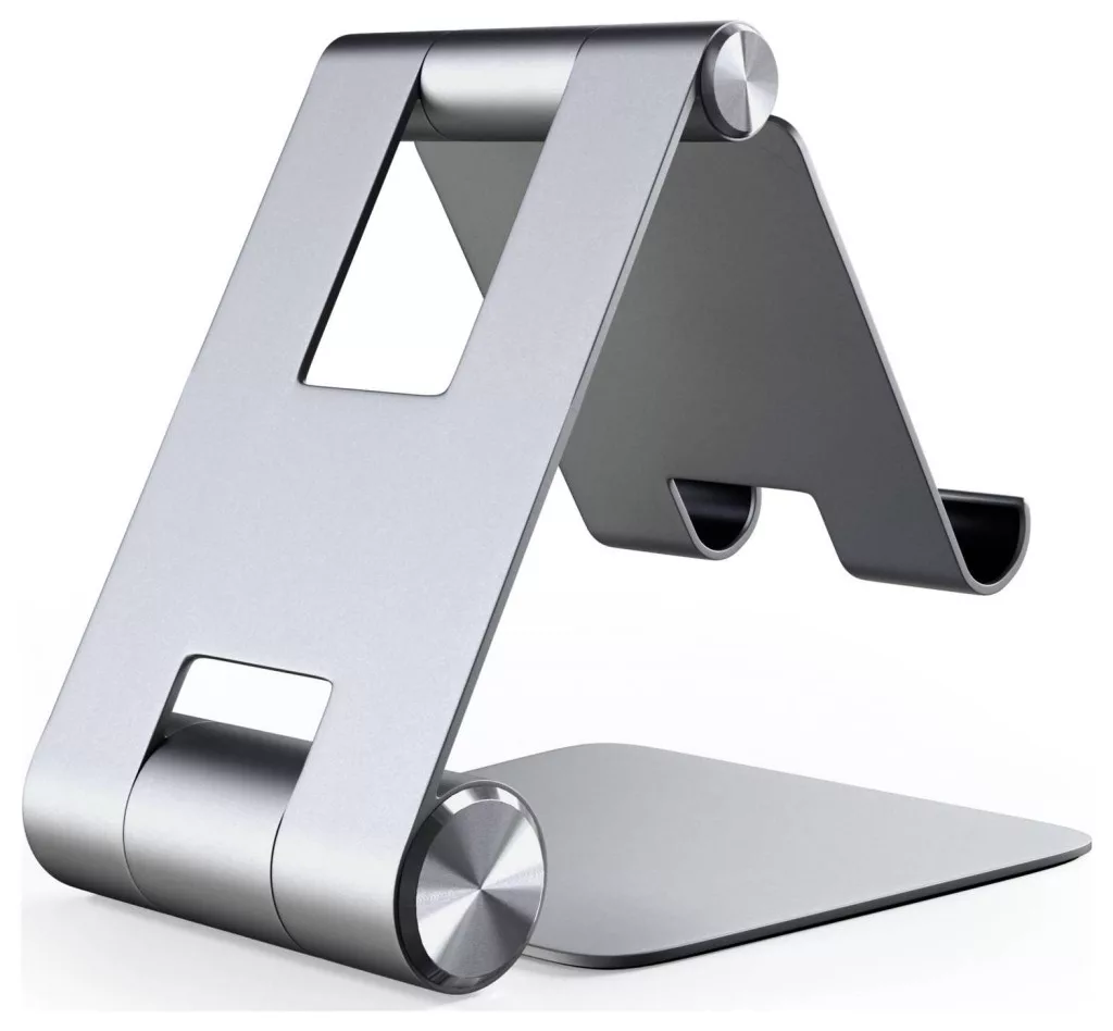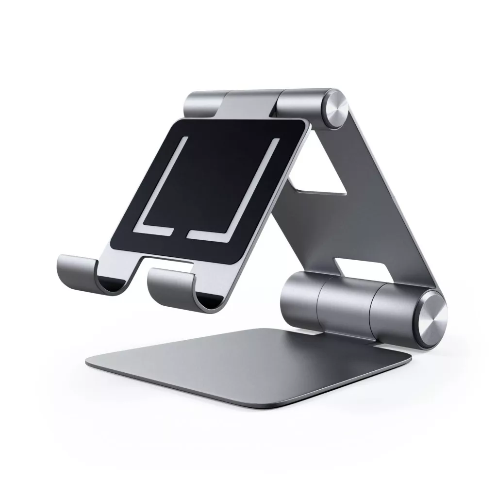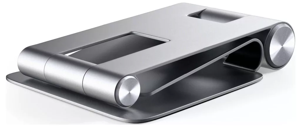 A Satechi alumínium összecsukható állvány bármely okostelefonhoz vagy táblagéphez alkalmas állvány, amely biztosítja, hogy az eszköz kényelmes magasságban legyen a munkavégzéshez. A tartó alumíniumból készült, a konzoltartók, amelyeken a készülék támaszkodik, gumival vannak megerősítve, hogy megakadályozzák a karcolásokat.