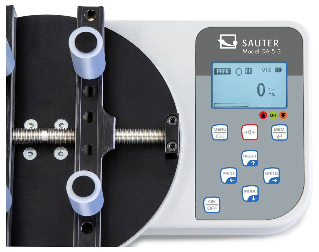 Jellemzők: Gyorsrögzítő rendszer: A négy üvegetartót (tartó) az idő megtakarítása érdekében csavarás helyett helyezzük be. Ez lehetővé teszi a gyorsabb átkonfigurálást más palackméretekhez · Fém ház állandó használatra zord környezeti körülmények között · Kapacitás kijelzés: Egy emelkedő fénysáv a még rendelkezésre álló mérési tartományt mutatja · Háttérvilágítású grafikus LCD kijelző · Gumiláb csúszásgátló funkcióval · A belső adatmemória legfeljebb 500 mérési adatot tárol. A memória tartalma opcionális szoftver segítségével átvihető a számítógépre · Peak hold funkció a csúcsérték rögzítéséhez · Mindkét forgásirányban használható · Határérték funkció Max / perc programozása húzó és toló irányban, akusztikus és optikai jel kimenetével. Ideális üzemmód a sorozatalkatrészek hatékony és hibamentes teszteléséhez · AUTO-OFF funkció az akkumulátor védelme érdekében.