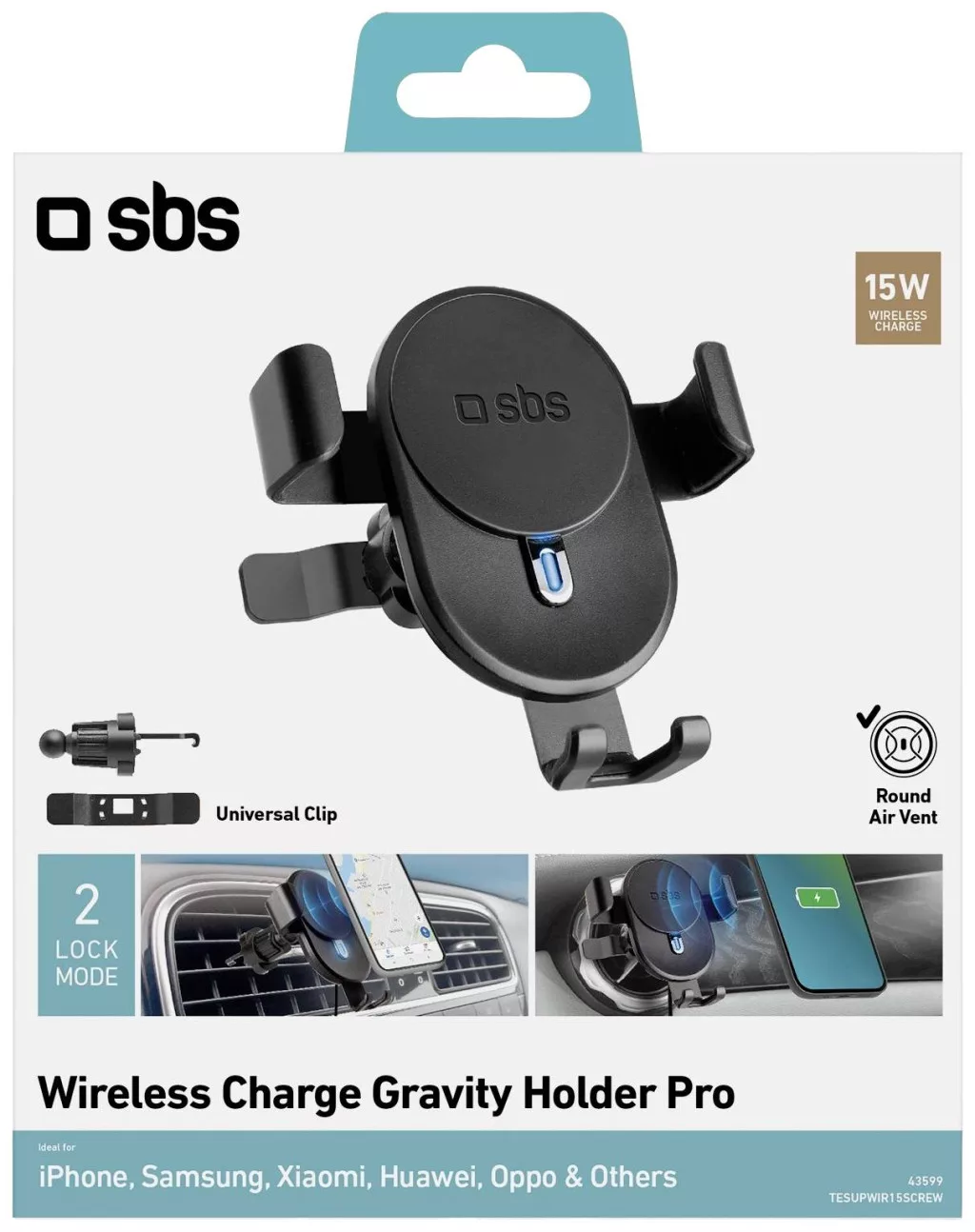 sbs mobile TESUPWIR15SCREW Szellőzőrács Autós mobiltelefon tartó Indukciós töltés funkcióval 85 mm (max)
