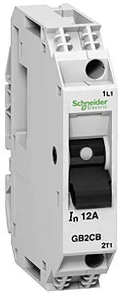 TeSys GB megszakító, 1 pólusú, 8A/250V, IEC/277V UL, ipari vezérlőáramkörök védelmére. Termomágneses védelmet kínál 108 A (13-14 In) mágneses kioldási szinttel és Icu 1. kA@240V megszakítóképességgel. Kompakt készülék (15 mm széles) billenőkar vezérléssel és DIN sínre gyors rögzítéssel. Több szabványnak is megfelel (IEC, UL, CSA, NEMKO) és Green Premium (RoHs/Reach).