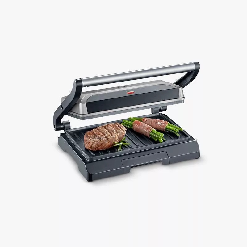 Többfunkciós és minden ízléshez: sokoldalú hús, paninik, szárnyasok, zöldségek stb. elkészítéséhez. Helytakarékos, vékony kialakítás, ideális kis háztartások számára: gyorsan használatra kész és elrakható a helytakarékosság érdekében.