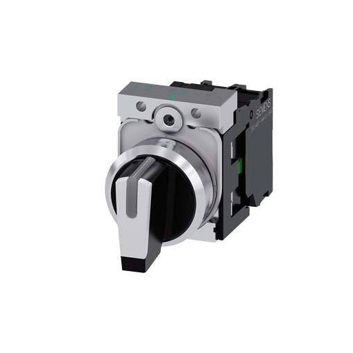 Megvilágított billenőkapcsoló, 22 mm, kerek, fém, magasfényű, fehér, billenőkapcsoló, rövid, 3 kapcsolási állás IO-II, reteszelő, kapcsolási szög 2x45°, 10:30h/12h/13:30h, tartóval, 1S, 1S, csavaros csatlakozó SIRIUS ACT billenőkapcsoló elektromos terhelések kapcsolására és vezérlésére. A Siemens SIRIUS ACT márkanév alatt egyedülálló, világszerte jóváhagyott vezérlő- és jelzőeszközök portfólióját kínálja három modern dizájnsorozatban, robusztus valódi fémből és kiváló minőségű műanyagból.