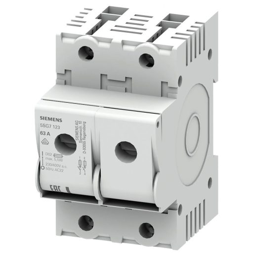 Műszaki adatok: Biztosíték méret: D02 · Méret, magasság: 70 mm · Méret, mélység: 90 mm · Méret, szélesség: 54 mm · Névleges feszültség: 400 V · Névleges áram: 63 A · Pólusszám: 2