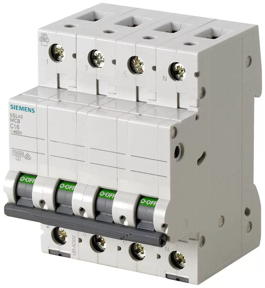 Miniatűr megszakító 400V 10kA, 3+N-pólusú, C, 25A SENTRON 5SL miniatűr megszakító a biztonságos rövidzárlat- és túlterhelés elleni védelemhez, normál alkalmazásokhoz lakó- és kereskedelmi épületekben.