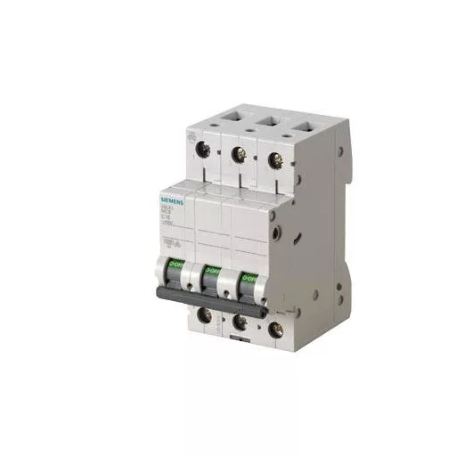 Miniatűr megszakító 400V 6kA, 3 pólusú, C, 3A Miniatűr megszakító SENTRON 5SL a biztonságos rövidzárlat- és túlterhelés elleni védelemhez normál alkalmazásokhoz lakó- és kereskedelmi épületekben.