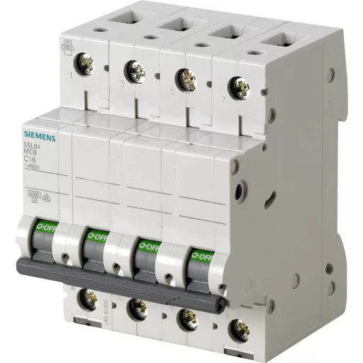Miniatűr megszakító 400V 6kA, 4 pólusú, B, 10A Miniatűr megszakító SENTRON 5SL a biztonságos rövidzárlat- és túlterhelés elleni védelemhez, általános alkalmazásokhoz lakó- és kereskedelmi épületekben.