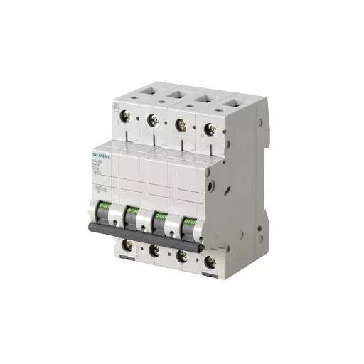 Miniatűr megszakító 400V 6kA, 3+N pólus, C, 6A SENTRON 5SL miniatűr megszakító a biztonságos rövidzárlat- és túlterhelés elleni védelemhez, általános alkalmazásokhoz lakó- és kereskedelmi épületekben.