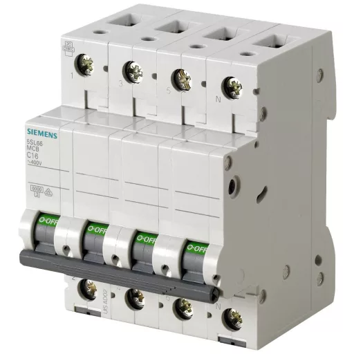Miniatűr megszakító 400V 6kA, 3+N-pólus, C, 32A SENTRON 5SL miniatűr megszakító a biztonságos rövidzárlat- és túlterhelés elleni védelemhez, normál alkalmazásokhoz lakó- és kereskedelmi épületekben.
