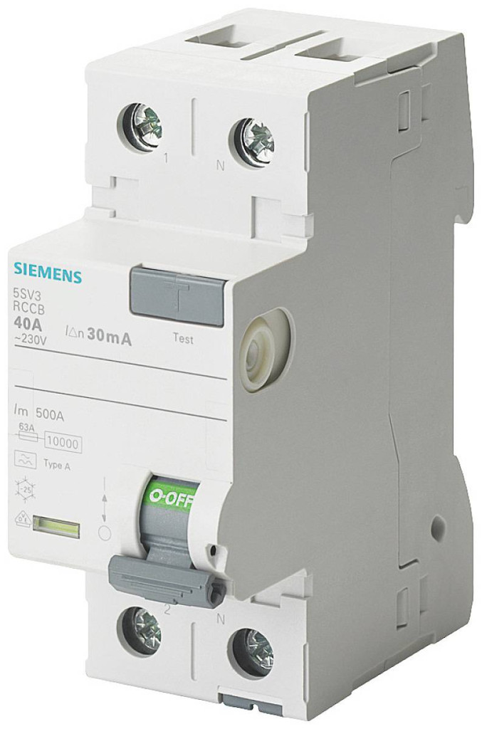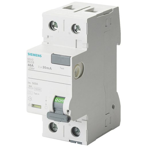 FI megszakító, 2 pólusú, F típusú, rövid idejű késleltetés, Be: 25 A, 30 mA, Un AC: 230 V Az FI megszakító egy hibaáram-védő berendezés a véletlen érintés elleni védelemhez A szabadalmaztatott hibaáram védőberendezések A Siemens-től a SENTRON elektromos szerelési védőelemei fontos részét képezik, mert megakadályozzák az életveszélyes elektromos baleseteket azáltal, hogy biztonságosan lekapcsolják a veszélyes maradékáramokat a földre. Az elektromosan felgyújtott tüzek azonnal megelőzhetők, amint azok kitörnek. Akár a feszültség alatt álló részek közvetlen érintésével működés közben, akár a berendezés közvetett megérintésével – a védelem elsősorban a gyors kikapcsolással érhető el. A Siemens 5SV RCCB főbb jellemzői a következők: 1. Átfogó védelem emberek és vagyontárgyak számára az áramütés ellen. 2. Legyen szó szinuszos AC maradékáramról vagy egyenletes egyenáramról – a Siemens minden igényhez a megfelelő típust és speciális változatokat kínálja. 3. Megbízható biztonság a szerelés során az alapfelszereltséghez tartozó markolat- és érintésvédelemnek köszönhetően. 4. Szerszámmentes leszerelés a kalapsínről vagy a gyűjtősín-szerelvényről a kényelmes csúszó-kezes kezelésnek köszönhetően. 5. A készülék előlapján található adatmátrix kód gyorsan és egyszerűen megad minden információt a hibaáram-megszakítóról. 6 A szabványok szerint védeni kell: A hibaáram-megszakítók megfelelnek a DIN VDE előírásainak. 7. Optimális technológia az Ön biztonsága érdekében – csak a Siemenstől.