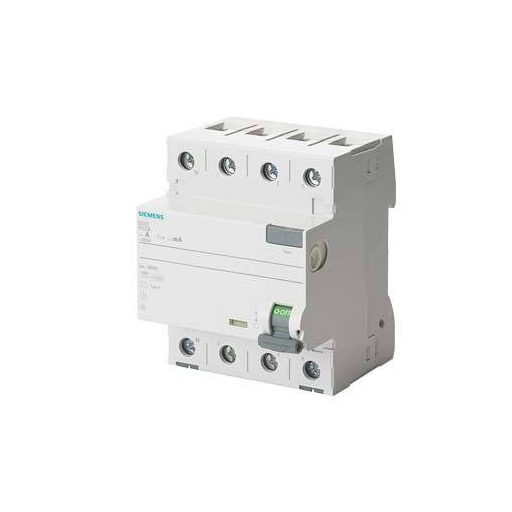 FI megszakító, 4 pólusú, A típusú, szelektív, In: 63 A, 300 mA, Un AC: 400 V, N-bal Az FI megszakító az érintésvédelmi hibaáram-védő berendezés A szabadalmaztatott hibaáram-védő készülékek A Siemens fontos része a SENTRON elektromos szerelési védőelemeinek, mert a veszélyes maradékáramok biztonságos lekapcsolásával megelőzik az életveszélyes elektromos baleseteket. Az elektromosan felgyújtott tüzek azonnal megelőzhetők, amint azok kitörnek. Akár a feszültség alatt álló részek közvetlen érintésével működés közben, akár a berendezés közvetett megérintésével – a védelem elsősorban a gyors kikapcsolással érhető el. A Siemens 5SV RCCB főbb jellemzői a következők: 1. Átfogó védelem emberek és vagyontárgyak számára az áramütés ellen. 2. Legyen szó szinuszos AC maradékáramról vagy egyenletes egyenáramról – a Siemens minden igényhez a megfelelő típust és speciális változatokat kínálja. 3. Megbízható biztonság a szerelés során az alapfelszereltséghez tartozó markolat- és érintésvédelemnek köszönhetően. 4. Szerszámmentes leszerelés a kalapsínről vagy a gyűjtősín-szerelvényről a kényelmes csúszó-kezes kezelésnek köszönhetően. 5. A készülék előlapján található adatmátrix kód gyorsan és egyszerűen megad minden információt a hibaáram-megszakítóról. 6. A szabványok szerint védeni kell: A hibaáram-megszakítók megfelelnek a DIN VDE előírásainak. 7. Optimális technológia az Ön biztonsága érdekében – csak a Siemenstől.