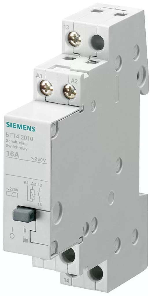 Kapcsoló relé 1S érintkezővel AC 230V 16A vezérléshez AC 24V Siemens kapcsolóberendezés lakossági, kereskedelmi és ipari alkalmazásokhoz. A Siemens innovatív kapcsolóeszközei fontos elemei a SENTRON elektromos berendezések beépítésének. A távkapcsolókkal, a kapcsoló relékkel, az Insta kontaktorokkal és az időzítőkkel számos lehetőséget kínál különböző kapcsolási funkciók megvalósítására. A lakossági, infrastrukturális vagy ipari alkalmazások számára a Siemens a megfelelő portfóliót kínálja minden kapcsolási funkció számára. Tehát minden követelményhez megfelelő eszközzel rendelkezik! A Siemens kapcsolóberendezéseit a következők jellemzik: 1. Kényelmes és egyszerű összeszerelési és csatlakozási technológia. 2. Megbízható telepítési biztonság a hagyományos érintésvédelemnek köszönhetően. 3. Kiterjedt és könnyen összeszerelt tartozékok. 4 Optimális technológia az Ön biztonsága érdekében - csak a Siemens.Siemens kínál állandó portfóliót az épületek és az ipar biztonságos, hatékony elektromos infrastruktúrájának védelmére, kapcsolására, mérésére és felügyeletére szolgáló eszközökre, elosztórendszerekre, kapcsolókra és aljzatokra.