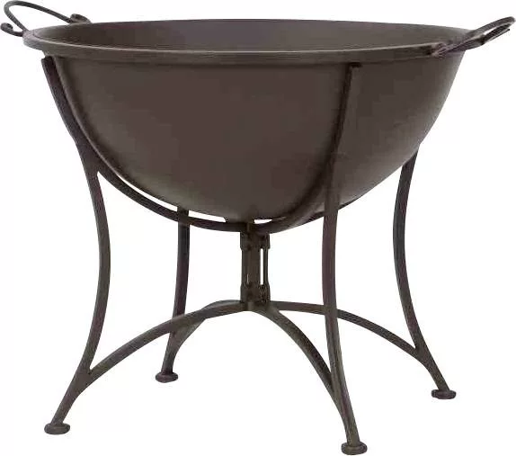 Antik tűzoltótál, porfestett fém, rozsda színű, összecsukható talppal, 64,5x53,5x48,5 cm