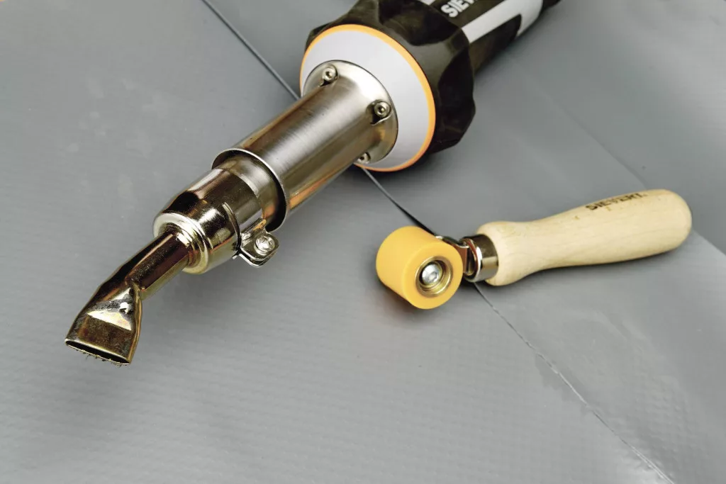 Szilikon nyomóhenger, golyóscsapágy a hőre lágyuló tetőfedő és vízszigetelő membránok átfedési módszerrel történő hegesztéséhez. Az ergonomikus formájú fogantyú optimális kezelést és az érintkezési nyomás mérését kínálja.