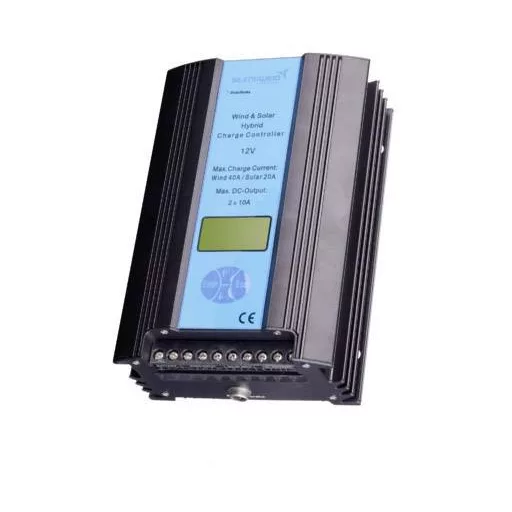 Jellemzők: Wireless Interface · PWM (impulzusszélesség-modulált) hibrid vezérlő · kisütött · Két külön kapcsolható DC kimenet · Minden háromfázisú váltakozó áramú szélgenerátorhoz használható · Állítható fokozási funkció · Megvilágított LC kijelző · Robusztus alumínium ház hűtőbordákkal · terhelési határérték · vihar fék · Fenntartó töltés · Csatlakozás további leállítási funkcióhoz