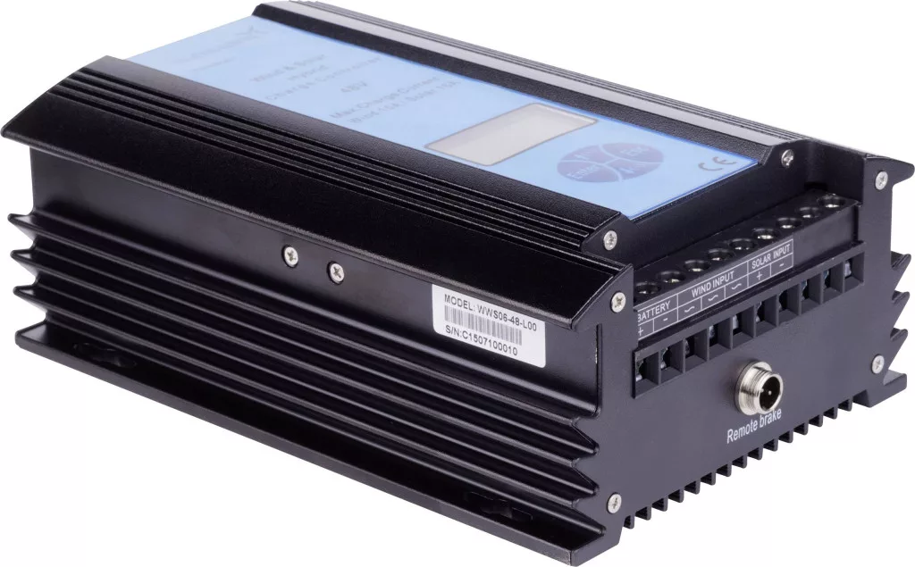 Jellemzők: Wireless Interface · PWM (impulzusszélesség-modulált) hibrid vezérlő · kisütött · Két külön kapcsolható DC kimenet · Minden háromfázisú váltakozó áramú szélgenerátorhoz használható · Állítható fokozási funkció · Megvilágított LC kijelző · Robusztus alumínium ház hűtőbordákkal · terhelési határérték · vihar fék · Fenntartó töltés · Csatlakozás további leállítási funkcióhoz