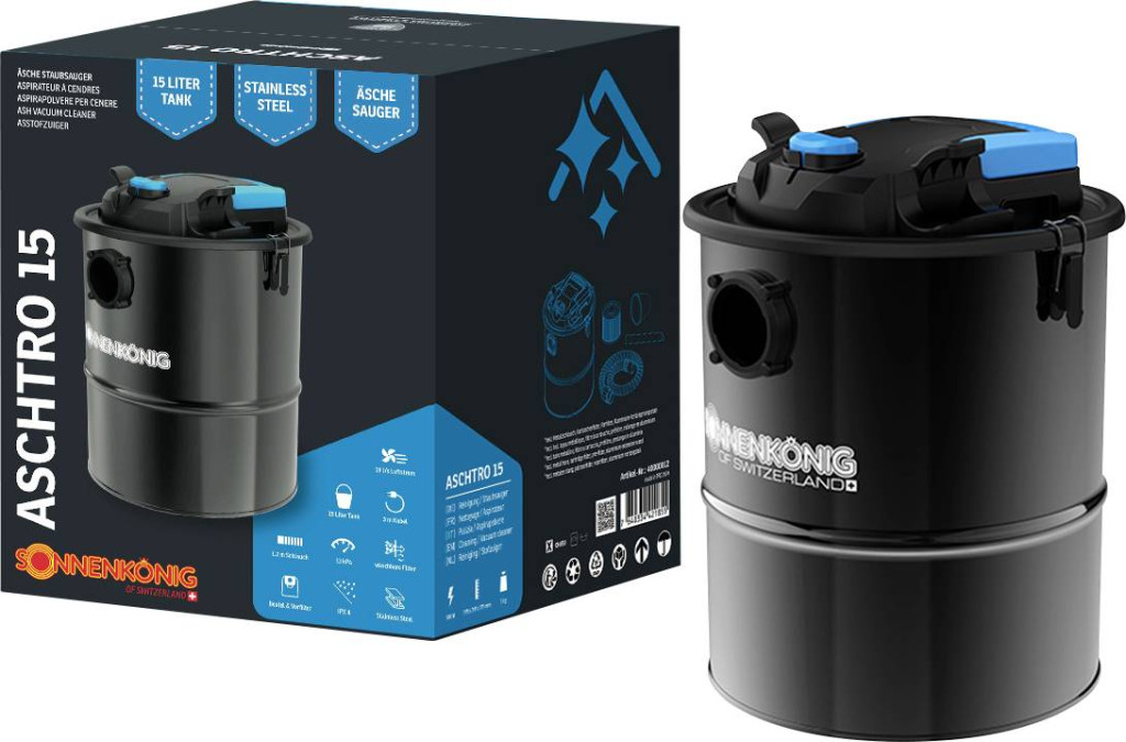 Az ASCHTRO 15 egy nagy teljesítményű hamuszívó, amelyet arra terveztek, hogy könnyedén felszívja a kandallóban maradt hamut, és egy nagyméretű, 15 literes gyűjtőtartállyal rendelkezik a hosszabb használat érdekében. A fémtartály ürítése hihetetlenül egyszerű a gyorszáraknak köszönhetően. Könnyű súlyának és praktikus hordozófogantyújának köszönhetően a porszívó könnyedén szállítható.
