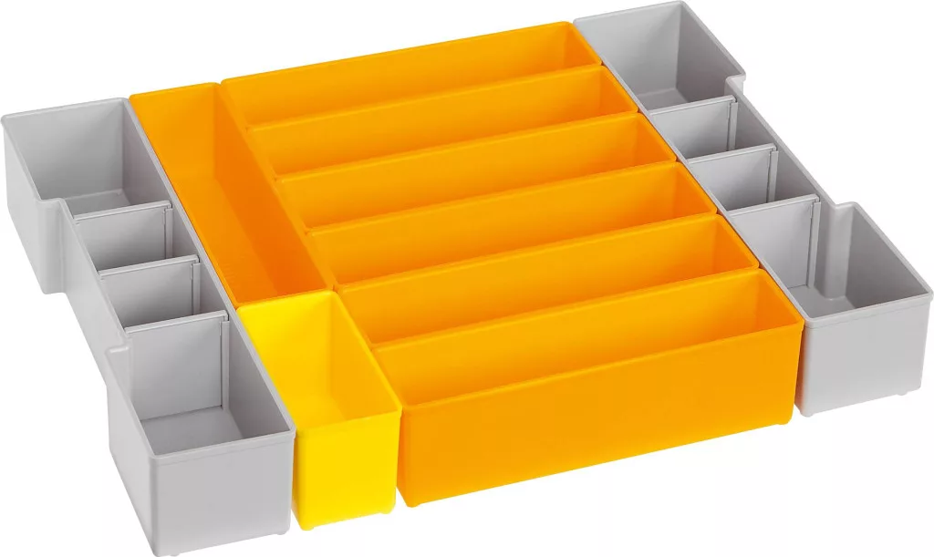 L-BOXX 102-hez / Tartalma: 2 db U3 betétdoboz, szürke, 6 válaszfallal, 7 db F3 narancssárga betétdoboz, 1 db B3 sárga betétdoboz
