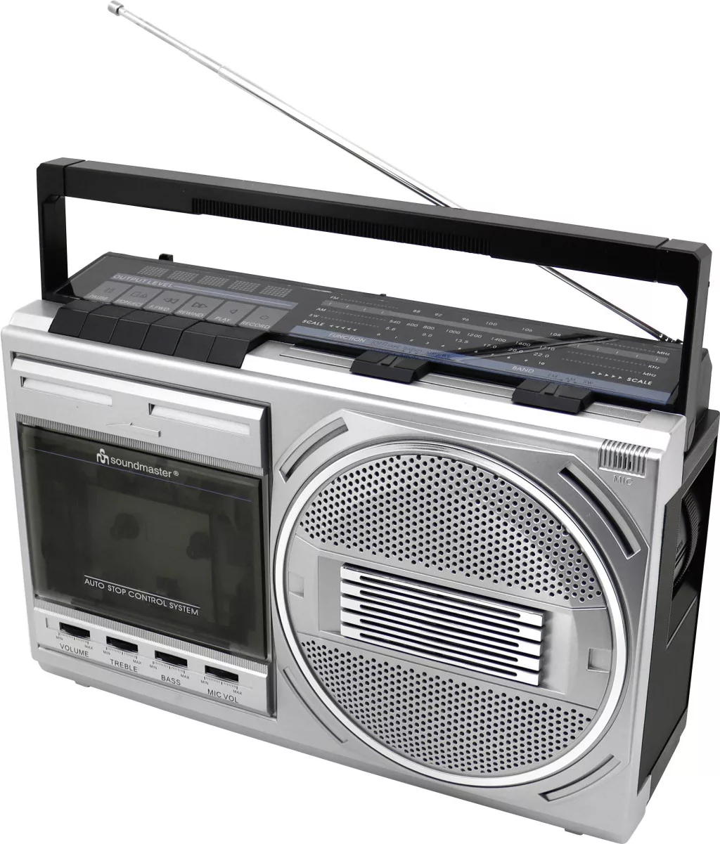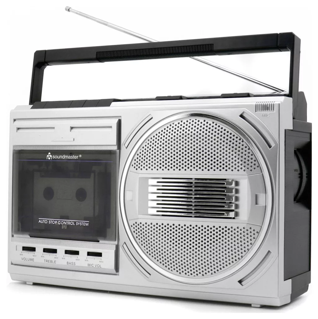 Soundmaster RR20SI kazettás magnó, hordozható kazettás magnó, fekete, ezüst
