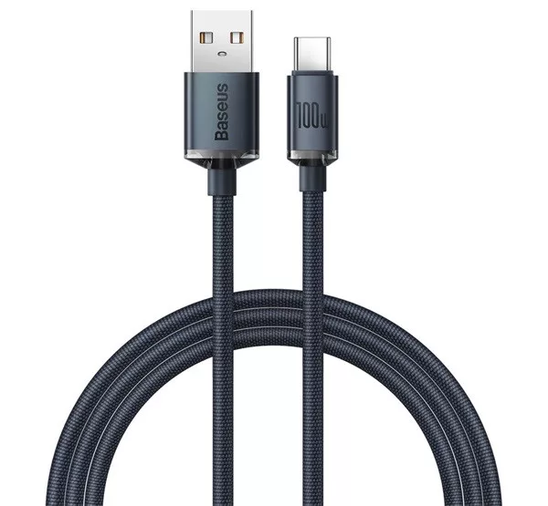 BASEUS CRYSTAL SHINE adatkábel (USB - Type-C, 100W, PD gyorstöltő, cipőfűző, 200cm) FEKETE