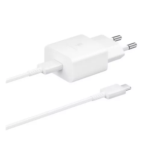 SAMSUNG hálózati töltő Type-C aljzat 15W, gyorstöltő + Type-C kábel, FEHÉR