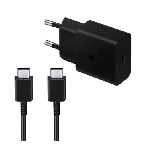 SAMSUNG hálózati töltő Type-C aljzat 15W, gyorstöltő + Type-C kábel, FEKETE
