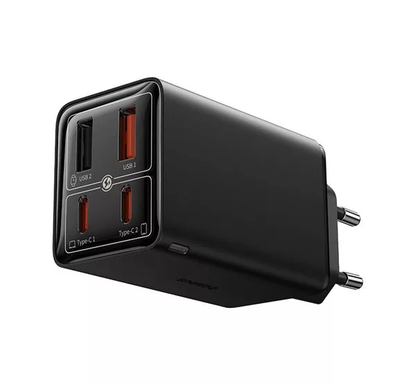 BASEUS hálózati töltő 2 USB+2 Type-C aljzat (65W, GaN5, gyorstöltő + Type-C kábel) FEKETE