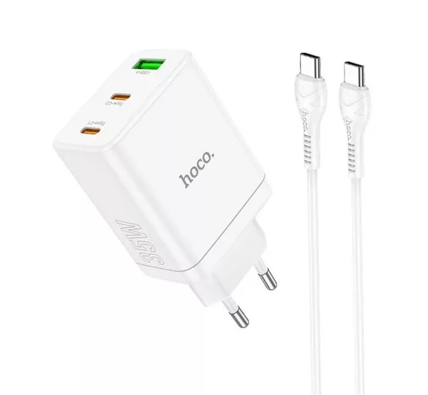 HOCO N33 hálózati töltő USB+2 Type-C aljzat (35W, PD gyorstöltő 3.0 + Type-C kábel) FEHÉR