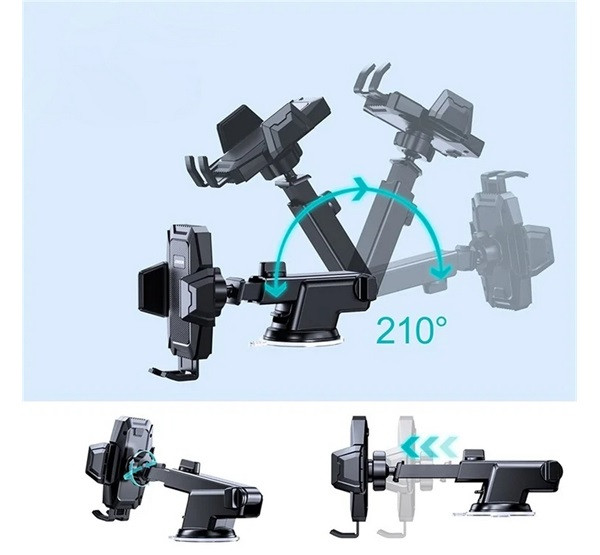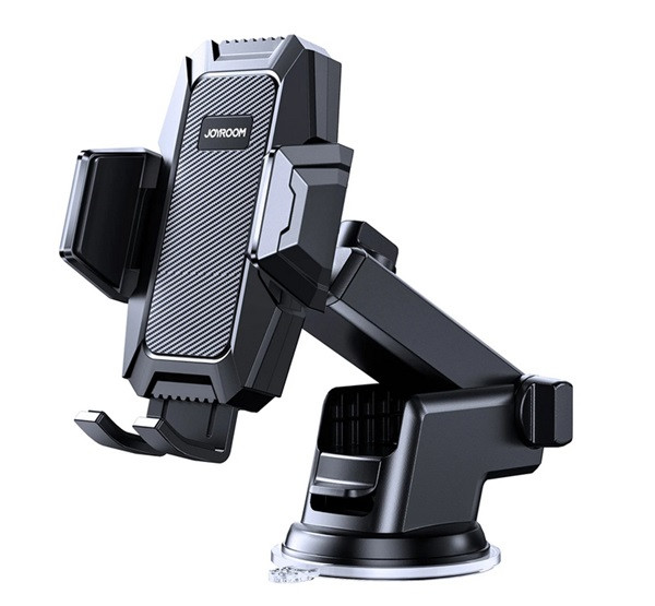 JOYROOM autós tartó (műszerfalra, szélvédőre, tapadókorongos, automata, állítható kar, 4.5-6.5" méret) FEKETE