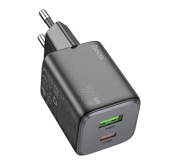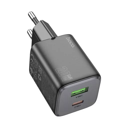 HOCO N41 hálózati töltő USB+Type-C aljzat (20W, GaN, PD gyorstöltő 3.0) FEKETE