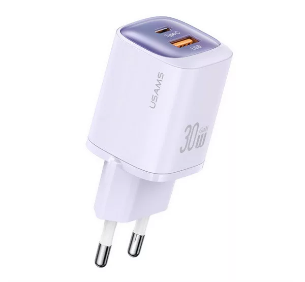 USAMS CC254 hálózati töltő USB+Type-C aljzat 30W, PD gyorstöltő, LILA