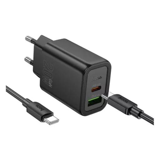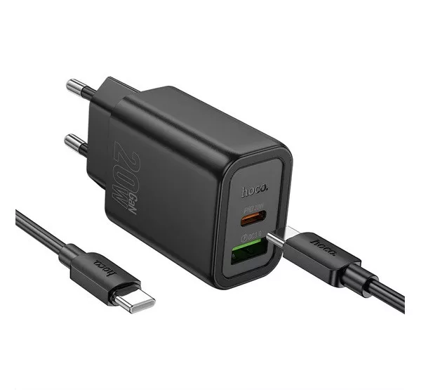 HOCO N61 hálózati töltő USB+Type-C aljzat 20W, PD gyorstöltő 3.0 + Type-C kábel, FEKETE