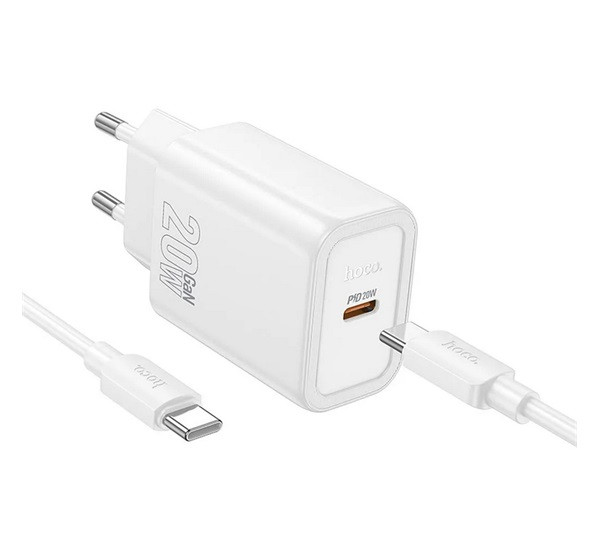 HOCO N60 hálózati töltő Type-C aljzat (20W, PD gyorstöltő 3.0 + Type-C kábel) FEHÉR