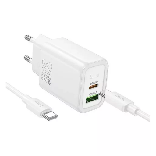 HOCO N63 hálózati töltő USB+Type-C aljzat 30W, PD gyorstöltő 3.0 + Type-C kábel, FEHÉR