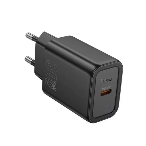 HOCO N62 hálózati töltő Type-C aljzat (30W, PD gyorstöltő 3.0) FEKETE