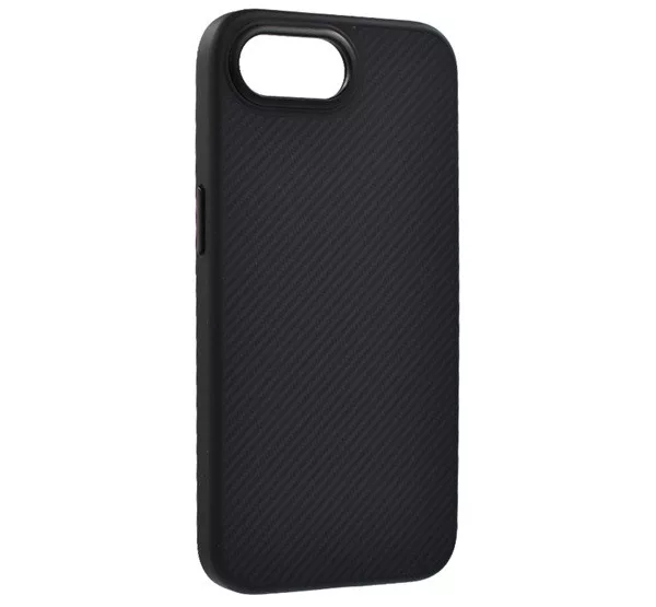 Szilikon telefonvédő (ütésállóság, műanyag hátlap, MagSafe, karbon minta) FEKETE