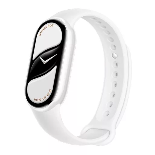 A Xiaomi Smart Band egy elegáns kerámia keretet mutat be, melyet egy hozzáillő kerámia csat és egy fehér fluorogumi szíj egészít ki, kifinomult és tapintható eleganciát sugározva.