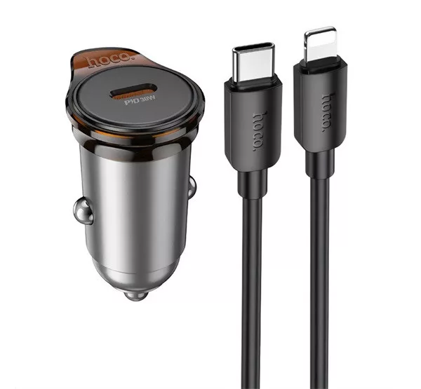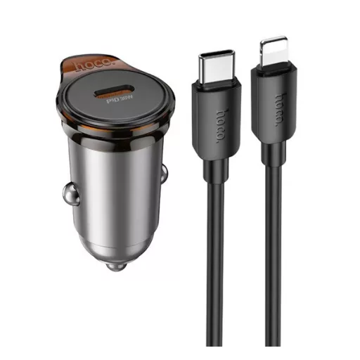 HOCO NZ16 autós töltő Type-C aljzat 30W, PD gyorstöltő + lightning kábel, SÖTÉTSZÜRKE