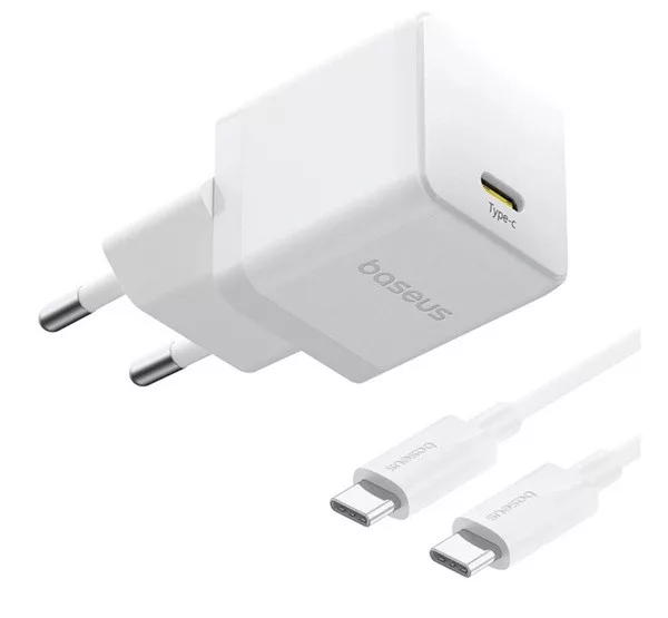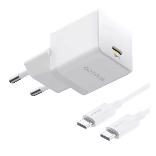 BASEUS PALM 1C hálózati töltő Type-C aljzat 20W, PD gyorstöltő 3.0 + Type-C kábel, FEHÉR