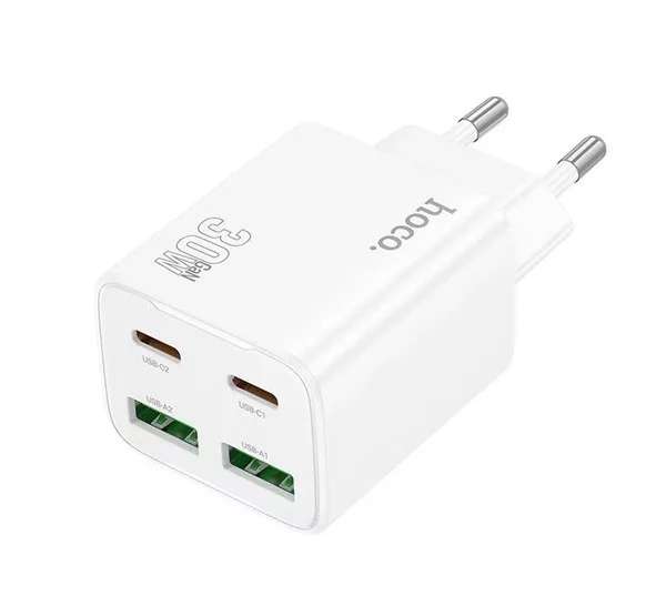 HOCO N56 hálózati töltő 2 USB+2 Type-C aljzat (30W, GaN, PD gyorstöltő 3.0) FEHÉR