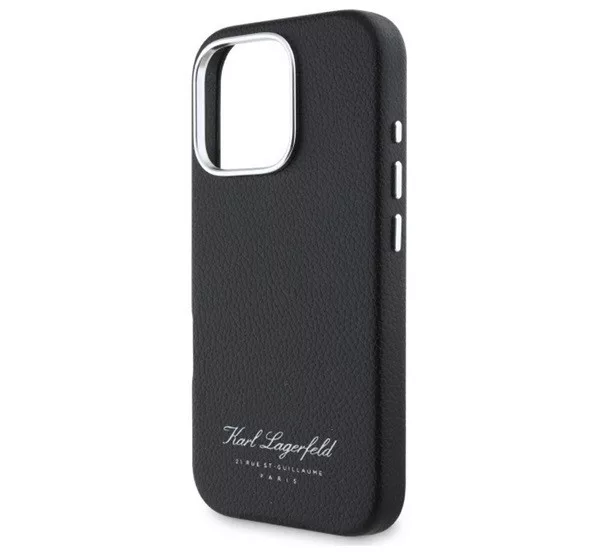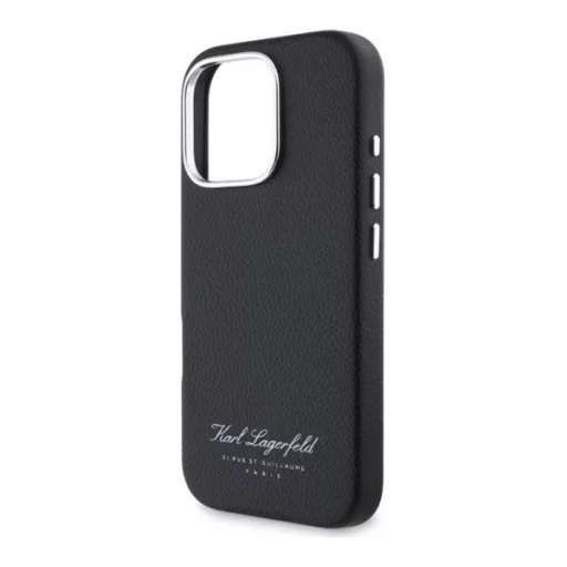iPhone 16 Pro KARL LAGERFELD GRAINED PU HOTEL RSG szilikon telefonvédő ütésállóság, bőr hatású hátlap, FEKETE