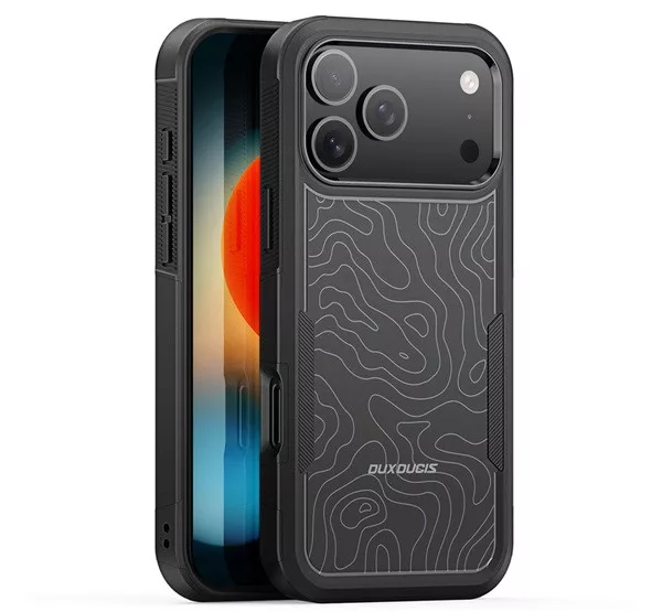 iPhone 17 Pro Max DUX DUCIS SHLD defender szilikon telefonvédő erős ütésállóság, terep minta, FEKETE