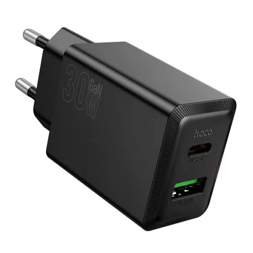 HOCO N71 hálózati töltő USB+Type-C aljzat 30W, PD gyorstöltő 3.0, FEKETE