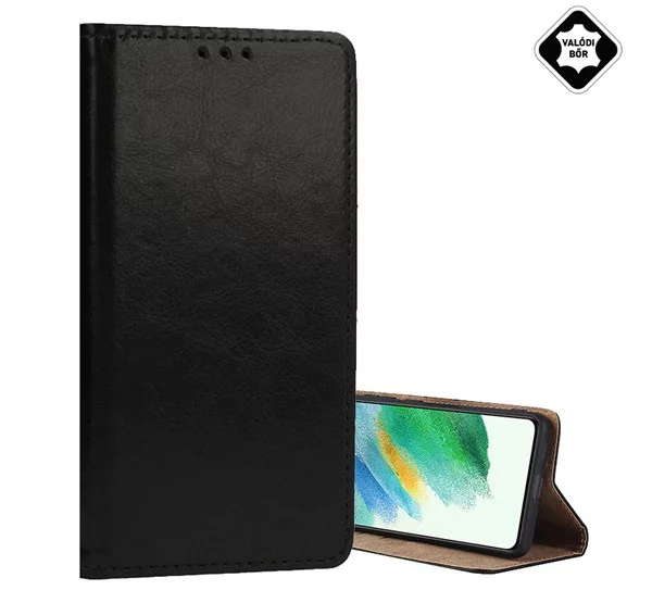 Redmi Note 15 Pro 5G GIGAPACK Tok álló, valódi bőr FLIP, asztali tartó, FEKETE