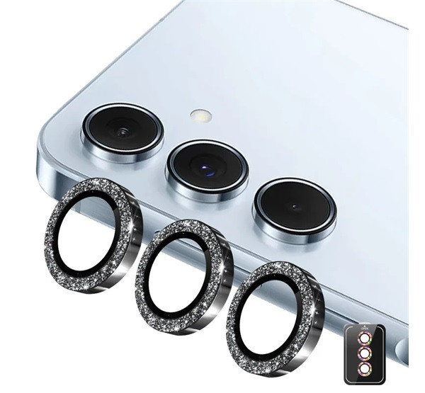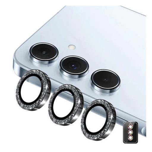 ENKAY kameravédő üveg (9H, csillámporos, csak lencse + segédkeret) FEKETE