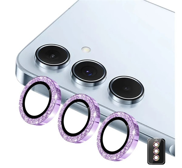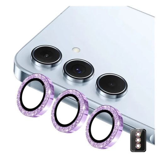 ENKAY kameravédő üveg (9H, csillámporos, csak lencse + segédkeret) LILA