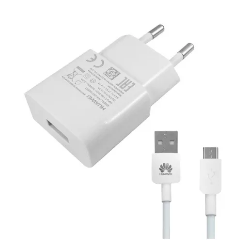 HUAWEI HW-050100E01W hálózati töltő USB aljzat 5W + microUSB kábel FEHÉR