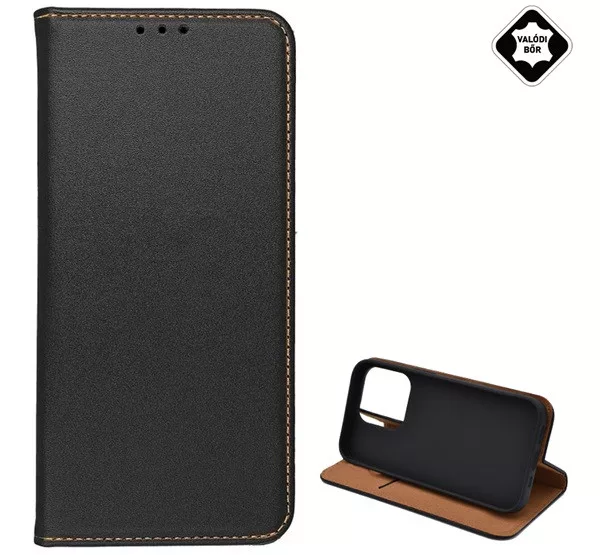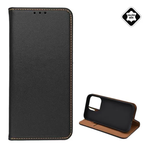 Tok álló, valódi bőr (FLIP, oldalra nyíló, asztali tartó) FEKETE