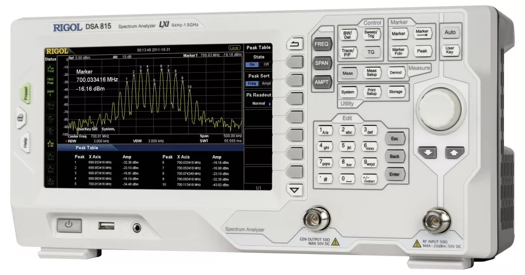 A DSA815 spektrum analizátor félig professzionális és professzionális alkalmazásokra egyaránt alkalmas. A nagyszámú szoftveres eszköz és a lehetséges kiegészítők ideálisak az EMI (EMC) előzetes megfelelőségi tesztekhez az EMC előírások végső elfogadásának előkészítéseként.